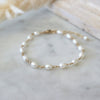 Elegantní náramek tvořený z oválných sladkovodních perel, které jsou k sobě jedna po druhé pečlivě spojeny pomocí jemného drátku. Minimalistický a zároveň nadčasový doplněk, který vynikne jak při slavnostní příležitosti, tak i s každodenním oblečením.