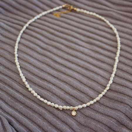 Hedvábný náhrdelník s perlami a čtyřlístkem