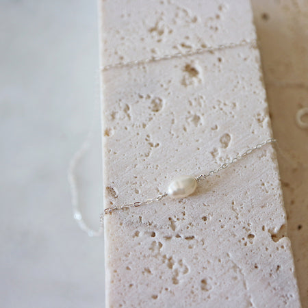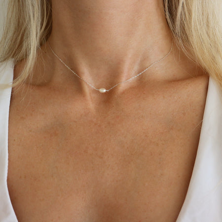 Stříbrný minimalistický náhrdelník s oválnými perlami