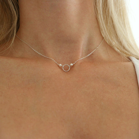 Stříbrný náhrdelník s karma kroužkem a perlami